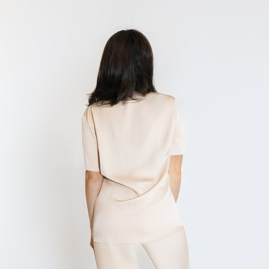 Washable Silk- Cap Sleeved Shorties Set- Champagne